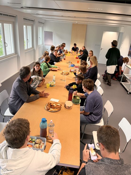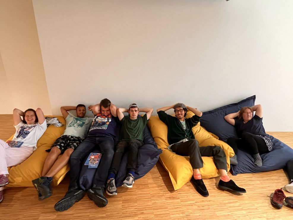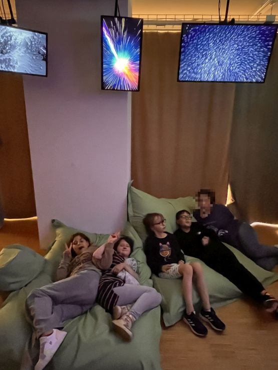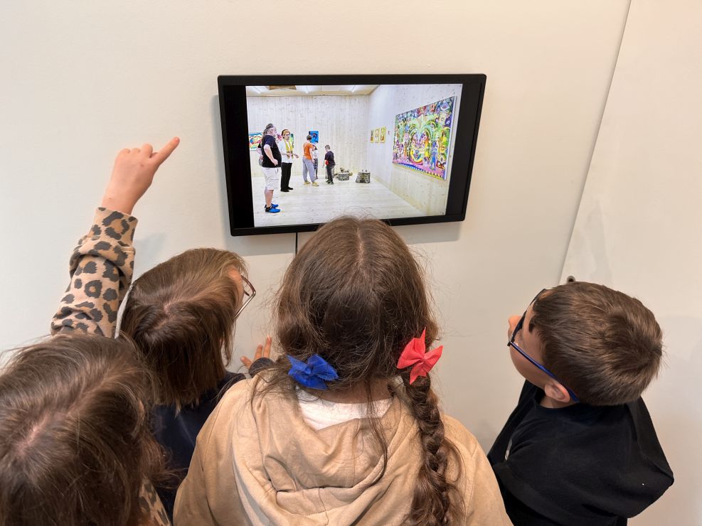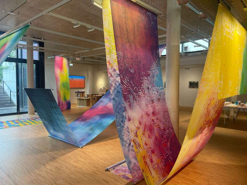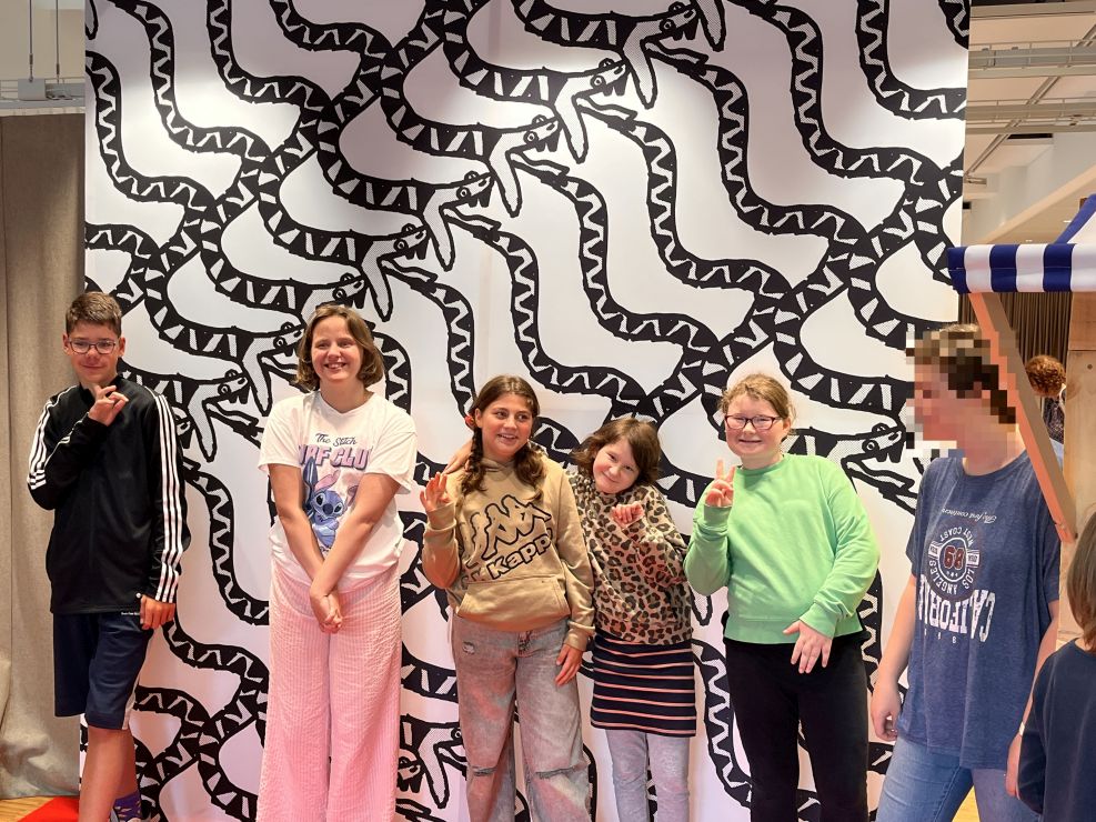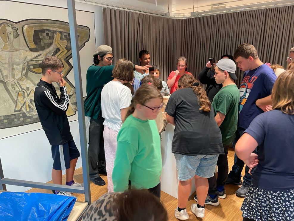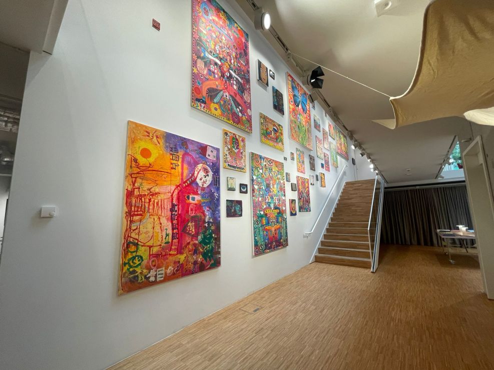 Am Montag, den 01.09.2025,  durften einige Schülerinnen und Schüler an einem besonderen Ausflug nach Frankfurt teilnehmen. Mit einem großen Reisebus ging es zu Ghakus letzter Ausstellung. In der Crespo-Foundation durften wir die Kunstwerke von Ghaku bestaunen. Auch ein gemeinsam gestaltetes Riesengemälde der Schule hing an der Wand. Ebenso waren weitere Kunstwerke von anderen Fliegenden Künstlerinnen und Künstlern ausgestellt. Alle durften staunen, hören, fühlen, phantasieren, erproben und genießen.
